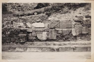 Perachora, section of stoa showing re-used blocks 5/13/33 91, "On cardboard. On the back ""91"""