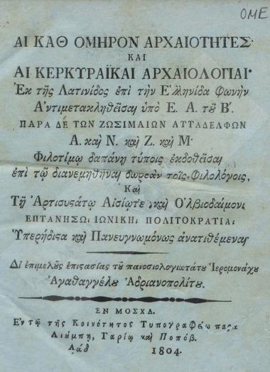 Αι καθ' Όμηρον αρχαιότητες και αι Κερκυραϊκαί αρχαιολογίαι