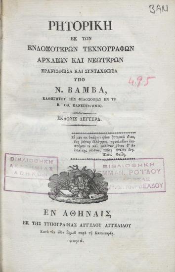 Ρητορική εκ των ενδοξοτέρων τεχνογράφων αρχαίων και νεωτέρων