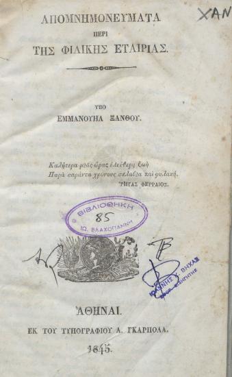 Απομνημονεύματα περί της Φιλικής Εταιρίας