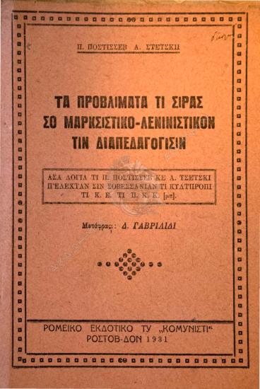 Τα προβλίματα τι ςιράς ςο μαρκςιςτικό-λενινιςτικόν τιν διαπεδαγόγιςιν : αςά λόγια τι Π. Πόςτιςςεβ κε Α. Στέτςκι π' ελέχταν ςιν Σοβεςςάνιαν τι Κυλτπρόπι τι Κ.Ε. τι Π.Κ.Κ.(μπ.)