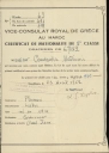 Certificat de Nationalite de 5o classe