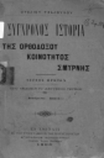 Σύγχρονος Ιστορία της ορθοδόξου κοινότητος Σμύρνης,Τεύχος Πρώτον