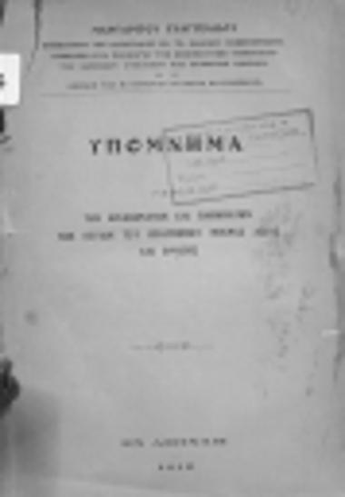 Υπόμνημα περί των δικαιωμάτων και παθημάτων των εστιών Μ. Ασίας-Θράκης