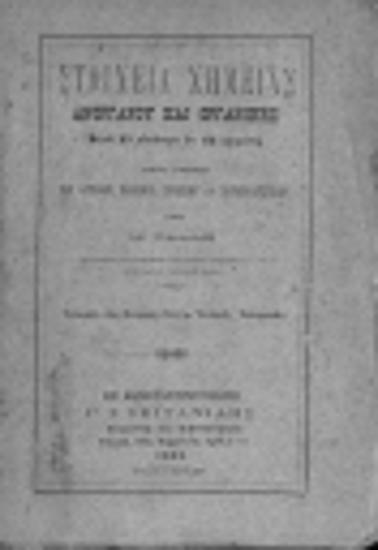 Στοιχεία Χημείας Ανόργανου και Οργανικής μετά 83 εικόνων εν τω κειμένω προς χρήσιν των αστικών, Ελληνικ. σχολείων και παρθεναγωγείων υπό Μ. Ράλλη, διδάκτορος και καθηγητού των φυσικών επιστημών εν τη κατά Χάλκην Εμπορική Σχολή