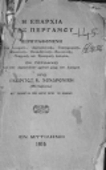 Η επαρχία της Περγάμου: Περιγραφομένη από Ιστορικής, Αρχαιολογικής, Τοπογραφικής, Κοινοτικής, Εκπαιδευτικής, Κοινωνικής, Γεωργικής και Εμπορικής απόψεως. Εν περιλήψει από των αρχαιοτάτων χρόνων μέχρι του διωγμού