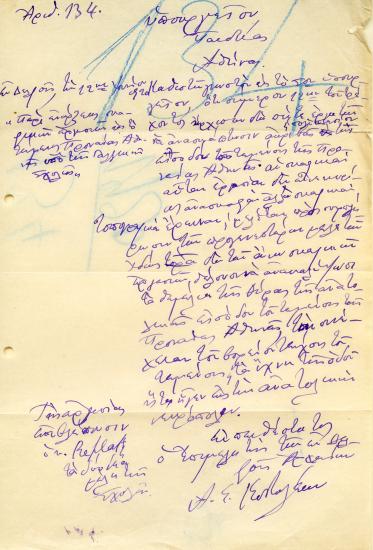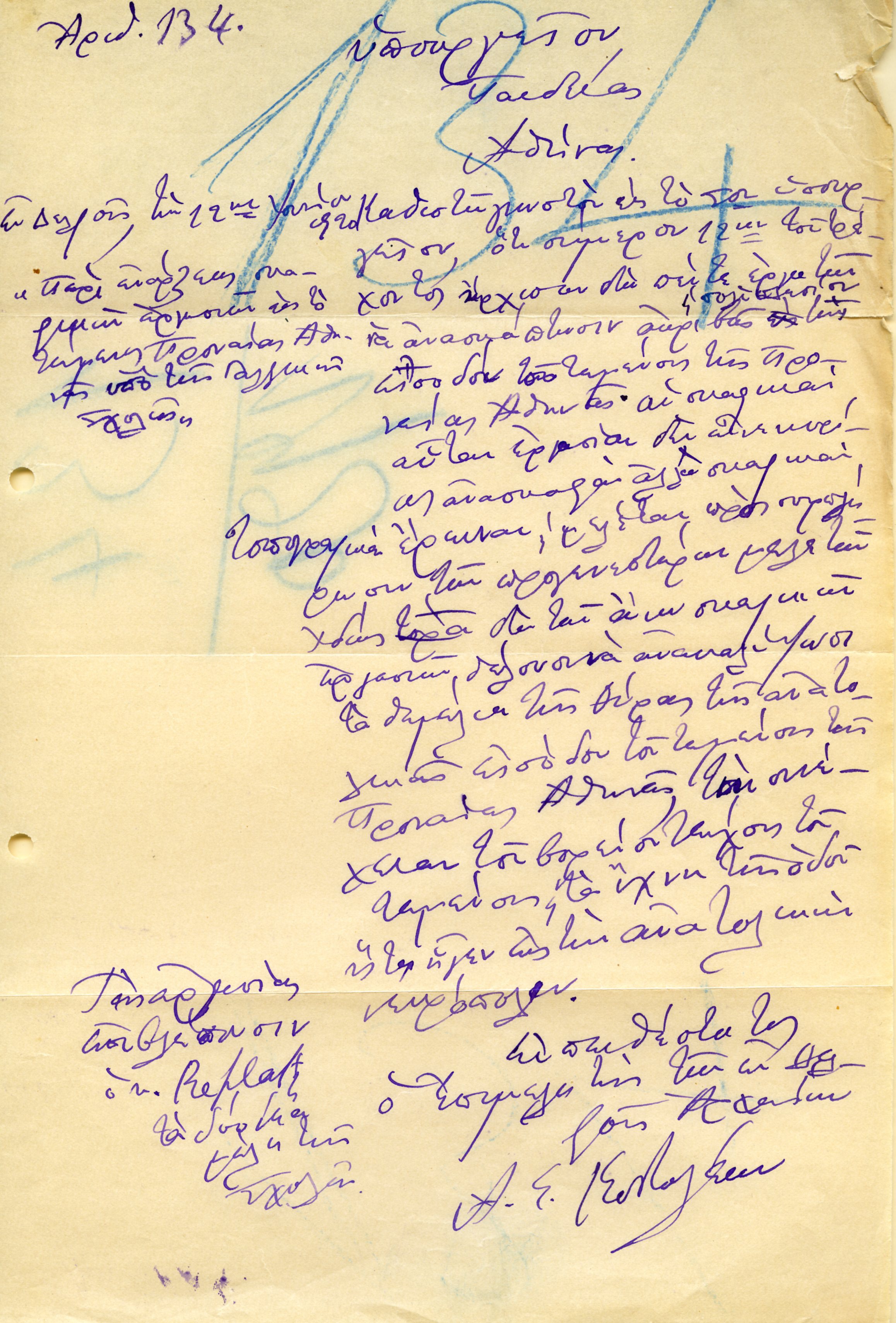 Hand-written draft letter where works at the the sanctuary of Athena Pronaia are announced