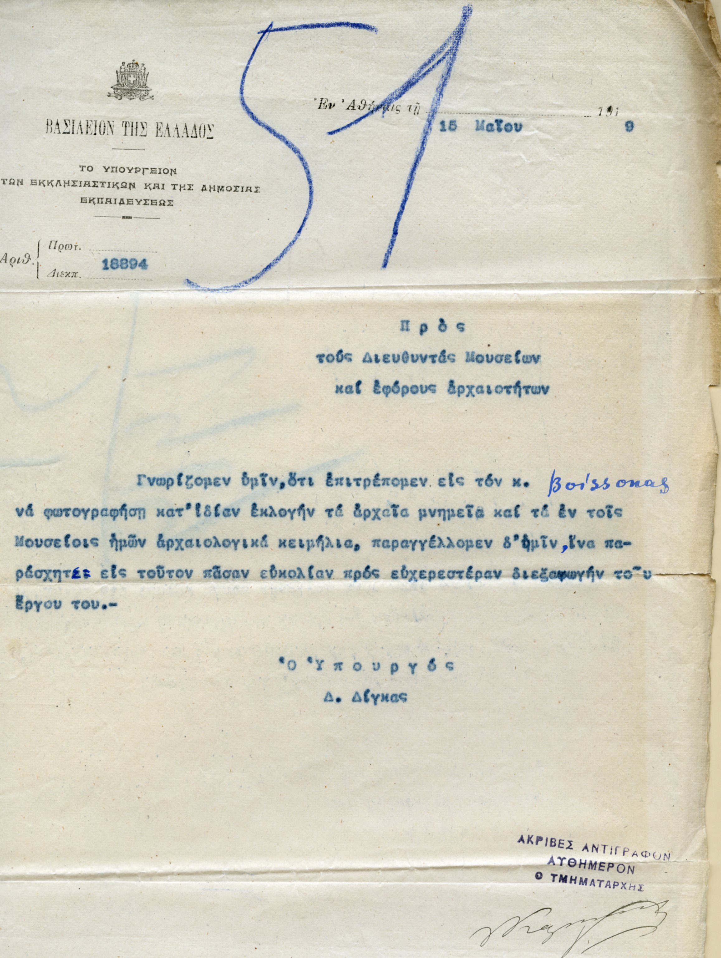 Φωτογράφιση αρχαιοτήτων από τον Boissonas