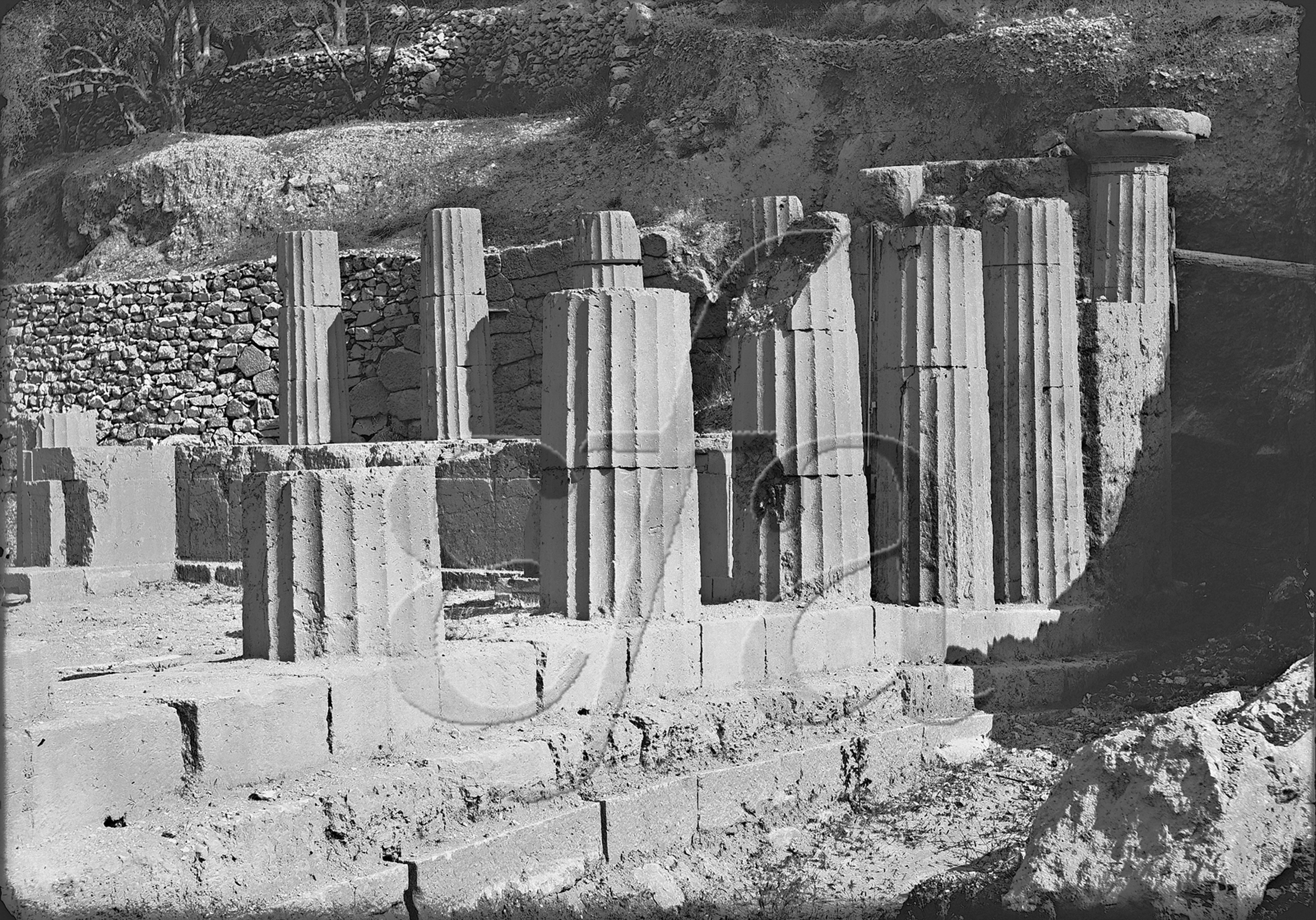 The poros temple of Athena Pronaia before the fall of the rocks.