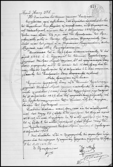 Έγκριση καταβολής ποσού δραχμών 5.000 στο Εργατικό Κέντρο Χανίων για τον καλύτερο εορτασμό της 4 Αυγούστου 1939 (EL)
