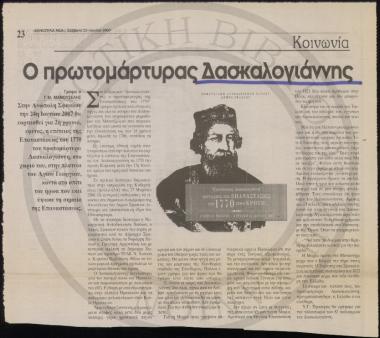 Αναφορά στο βιβλίο του Γ.Μ. Μανουσέλη "Δασκαλογιάννης ο πρωτομάρτυρας της Επαναστάσεως του 1770" και στους επετειακούς εορτασμούς που έγιναν τον Ιούνιο του 2007 στην Ανώπολη Σφακίων.