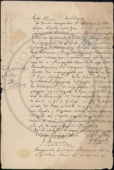 Νομικό κείμενο (επιδοτήριο) στο οποίο ζητείται από την νομαρχία Χανίων άδεια για την πραγματοποίηση μεταλλευτικών ερευνών στην χερσόνησο Σπάθα των Χανίων