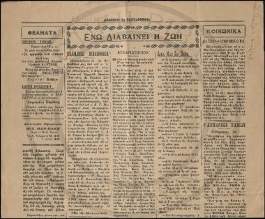 Φύλλο εφημερίδας Εσπερινός Ταχυδρόμος των Χανίων. Στην στήλη "Ενώ διαβαίνει η ζωή" υπάρχει άρθρο που αναφέρεται σε δωρεές πινάκων και βιβλίων προς την Μάλμειο Βιβλιοθήκη Χανίων. (EL)