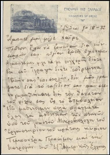 Επιστολή του Μιχαήλ Κούκιου προς τον Αντώνιο Μάλμο με την οποία, πέρα από προσωπικά ζητήματα, του αναφέρει και ζητήματα που έχουν να κάνουν με την πτηνοτροφία και την διδασκαλία αγροτικών επιστημών.