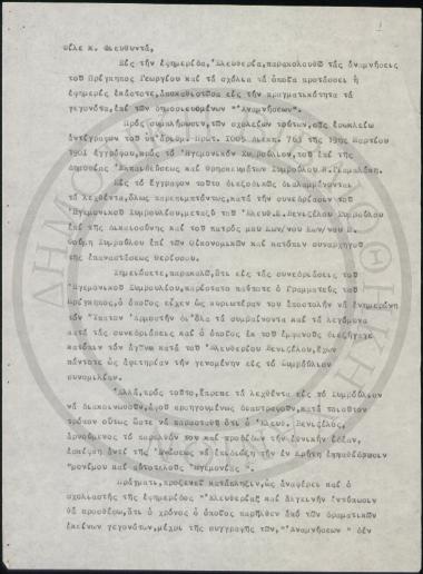 Ο Μιχαήλ Φούμης ενημερώνει τον Διευθυντή της εφ. "Ελευθερία" πως στο Ηγεμονικό Συμβούλιο παρίστατο ο γραμματέας του Ύπατου Αρμοστή, προκειμένου να τον ενημερώσει για όσα ειπώθηκαν, και στέλνει αντίγραφο του υπ' αρ. πρωτ. 1005 της 19/3/1901 προς το Ηγεμονικό Συμβούλιο, του Συμβούλου Δημοσίας Εκπαιδεύσεως και Θρησκευμάτων Ν. Γιαμαλάκη, όπου αναφέρονται όσα διαμήφθεισαν περί ηγεμονίας.