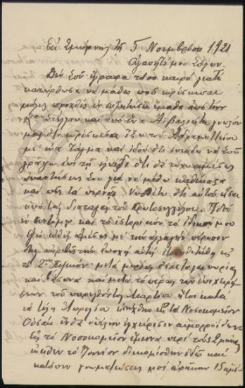 Επιστολή προσωπικού ύφους, όπου αναφέρεται ότι ο Καφφάτος βρίσκεται στην περιοχή του Αδραμυττίου με ένα τάγμα και ερωτάται για το πως είναι και τι κάνει. Ο γράφων τον ενημερώνει για τις επαφές του με την Αθήνα και ρωτάει γιατί δεν ζήτησε διαθεσιμότητα.