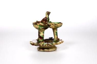 Με τρεις θέσεις αυτό το εφυαλωμένο κεραμικό απ το Τσανάκ-Καλέ, αν και κυρίως διακοσμητικό, πιθανόν να χρησιμοποιούταν για αλάτι πιπέρι και ρίγανη σε επίσημα γεύματα