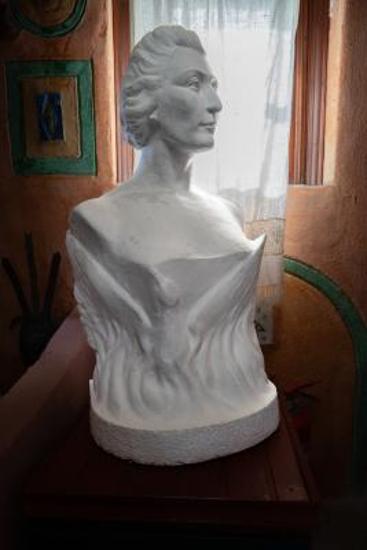Έργο της Λουκίας Γεωργαντή που απεικονίζει την γνωστή ηρωίδα της αντίστασης Λέλα Καραγιάννη Το τελικό γλυπτό της μελέτης αυτής έγινε σε μάρμαρο . Ο Φλεγόμενος Φοίνικας που βλέπουμε εδώ δεν κρατήθηκε στην μαρμάρινη εκδοχή. Το γλυπτό βρίσκεται στην οδό Τοσίτσα στην Αθήνα. Στις 26 Σεπτεμβρίου 2016, άγνωστοι βανδάλισαν το γλυπτό αποκεφαλίζοντάς το και τελικά το 2017 η προτομή αποκαταστάθηκε πλήρως από το τμήμα αποκατάστασης υπαίθριων γλυπτών του Δήμου Αθηναίων
