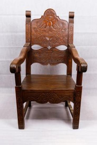 Επίσημο κάθισμα με ωραία σκαλίσματα, εξέλιξη του παλαιού \"θρονιού\" που ανήκαν μόνο σε επιφανή σπίτια της Μεγάλης Στράτας. Και η πολυθρόνες αυτού του τύπου αν και απομίμηση του θρονιού, ανήκουν αποκλειστικά στην επίπλωση της άρχουσας τάξης.\nΚατασκευάστηκε στο εργαστήριο ξυλογλυπτικής της Μαρίας Φαλτάϊτς στη Σκύρο.\nΒιβλιογραφία: Φαλτάιτς Μάνος Κ., Σκυριανή μικροξυλογλυπτική. Έκδοση Ιστορικής και Λαογραφικής Εταιρείας Σκύρου, Αθήνα 1972. Φαλτάιτς Μάνος Κ., Σκυριανή ξυλοτεχνία. Έκδοση Ιστορικής και Λαογραφικής Εταιρείας Σκύρου, Αθήνα 1973. \nΧατζημιχάλη Αγγελική, Ελληνική Λαϊκή Τέχνη: Σκύρος. Τύποις Π. Γ. Μακρής & Σία. Αθήνα 1925.