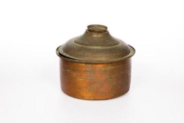 Χάλκινη κατσαρόλα με καπάκι. (Η μέτρηση του ύψους έγινε με το καπάκι)\nΒιβλιογραφία: Φαλτάιτς Μάνος Κ., «Η “αλώνη” του σκυριανού σπιτιού (διακοσμητικά αντικείμενα)». Ελληνική Λαϊκή Τέχνη, 8 (1972), σ. 146-155. \nΦαλτάιτς Μάνος Κ., Τα διακοσμητικά αντικείμενα του σκυριανού σπιτιού από ιστορική και κοινωνιολογική άποψη. Έκδοση του περιοδικού “συλλογές” σε συνεργασία με το Μουσείο Φαλτάιτς, Αθήνα 1986 (= Αρχείον Ευβοϊκών Μελετών 19 (1974), σ. 59-96).