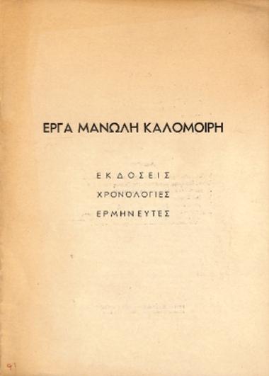 ΕΡΓΑ ΜΑΝΟΛΗ ΚΑΛΟΜΟΙΡΗ
