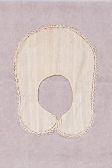 Παιδική ριγωτή μεταξωτή σαλιάρα. Τα τελειώματα διακοσμούνται με πλεκτή δαντέλα. Κλείνει στο πίσω μέρος με κουμπί.\nΒιβλιογραφία: Αντζουλάτου-Ρετσίλα Ευρυδίκη, «Η φροντίδα για το σώμα του νεογέννητου παιδιού: Η περίπτωση του σκυριανού παιδικού τσεμπεριού». Αρχείον ΕυβοΪκών Μελετών, 26 (1985), σ. 125-142. - Λάμπρου Αλίκη, Οι σκυριανές φορεσιές. Έκδοση Πελοποννησιακού Λαογραφικού Ιδρύματος, Ναύπλιο 1994. - Φαλτάιτς Αναστασία, Τα σκυριανά τσεμπεράκια των συλλογών του Μουσείου Φαλτάιτς. Έκδοση του περιοδικού “συλλογές” σε συνεργασία με το Μουσείο Φαλτάιτς, Αθήνα 1985. - Φαλτάιτς Μάνος Κ., Οι Σκυριανές φορεσιές από κοινωνιολογική άποψη. Α΄ Ανδρικές φορεσιές. Έκδοση Ιστορικής και Λαογραφικής Εταιρείας Σκύρου, Αθήνα 1973.