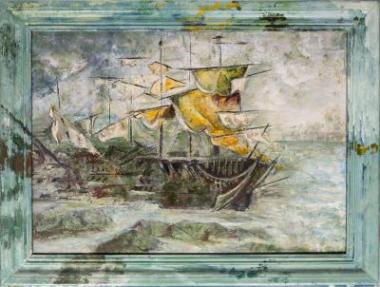 Φανταστική απεικόνιση από την Μάρθα Τζαβέλα του πλοίου των Σκυριανών ναυμάχων του 21 Αδερφών Ανέστη , εμπνευσμένη από σχετικές αφηγήσεις του Μάνου Φαλτάϊτς