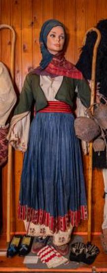 Αποτελείται από εσωτερικό μαντίλι (γύρος) για το δέσιμο των μαλλιών, τον ''πολίτικο'' φτα (κεφαλομάντιλο) βαλμένο μπούλα, μεντενέ, πουκάμισο με κεντημένους τσαλαπετεινούς στα μανίκια, λ'(ι)τσέρι (τσόχινη ζώνη), κουτνί (φόρεμα) με ποδόγυρο από ξεχωριστό ύφασμα, σκούτα με κεντητούς πολύχρωμους λαλέδες, μπλε τερλίκια και βελούδινες κεντημένες γκντόρες.\nΒιβλιογραφία: Αντζουλάτου-Ρετσίλα Ευρυδίκη, «Η φροντίδα για το σώμα του νεογέννητου παιδιού: Η περίπτωση του σκυριανού παιδικού τσεμπεριού». Αρχείον ΕυβοΪκών Μελετών, 26 (1985), σ. 125-142. - Λάμπρου Αλίκη, Οι σκυριανές φορεσιές. Έκδοση Πελοποννησιακού Λαογραφικού Ιδρύματος, Ναύπλιο 1994. - Φαλτάιτς Αναστασία, Τα σκυριανά τσεμπεράκια των συλλογών του Μουσείου Φαλτάιτς. Έκδοση του περιοδικού “συλλογές” σε συνεργασία με το Μουσείο Φαλτάιτς, Αθήνα 1985. - Φαλτάιτς Μάνος Κ., Οι Σκυριανές φορεσιές από κοινωνιολογική άποψη. Α΄ Ανδρικές φορεσιές. Έκδοση Ιστορικής και Λαογραφικής Εταιρείας Σκύρου, Αθήνα 1973.