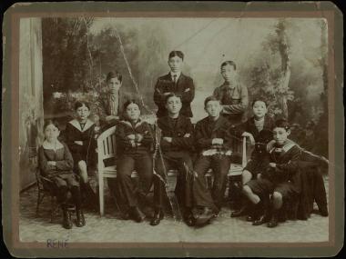B/w photograph of ten boys of the third class of Franco-Allemande school, 1911.