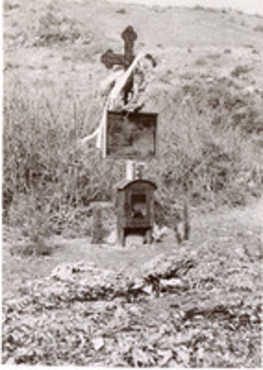 Φωτογραφία που εικονίζει τάφο στον Τόπο της Εκτέλεσης Καλαβρύτων, διακρίνονται εικόνισμα και εικονοστάσι. (EL)