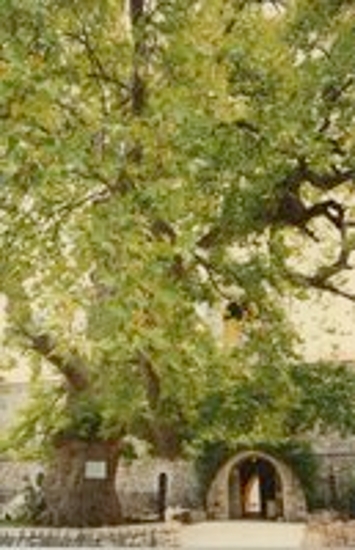 Ο ιστορικός πλάτανος στην είσοδο της Μονής της Αγίας Λαύρας η οποία καταστράφηκε και εκτελέστηκαν οι μοναχοί στις 14-12-1943 από τις Γερμανικές Δυνάμεις Κατοχής