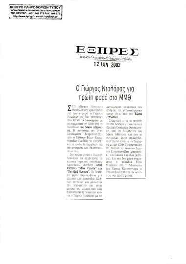 Publication in the "EXPRESS" newspaper entitled "Yorgos Dalaras for the first time at MMTH"