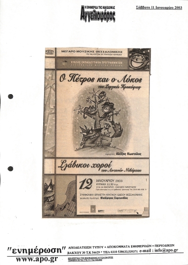 Δημοσίευμα στην εφημερίδα "ΑΓΓΕΛΙΟΦΟΡΟΣ" (EL)