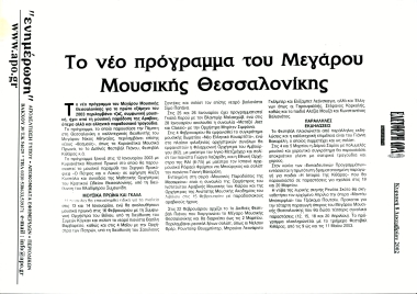 Publication in the newspaper "ELEFTHERI ORA" entitled "The new program of the Thessaloniki Concert Hall"