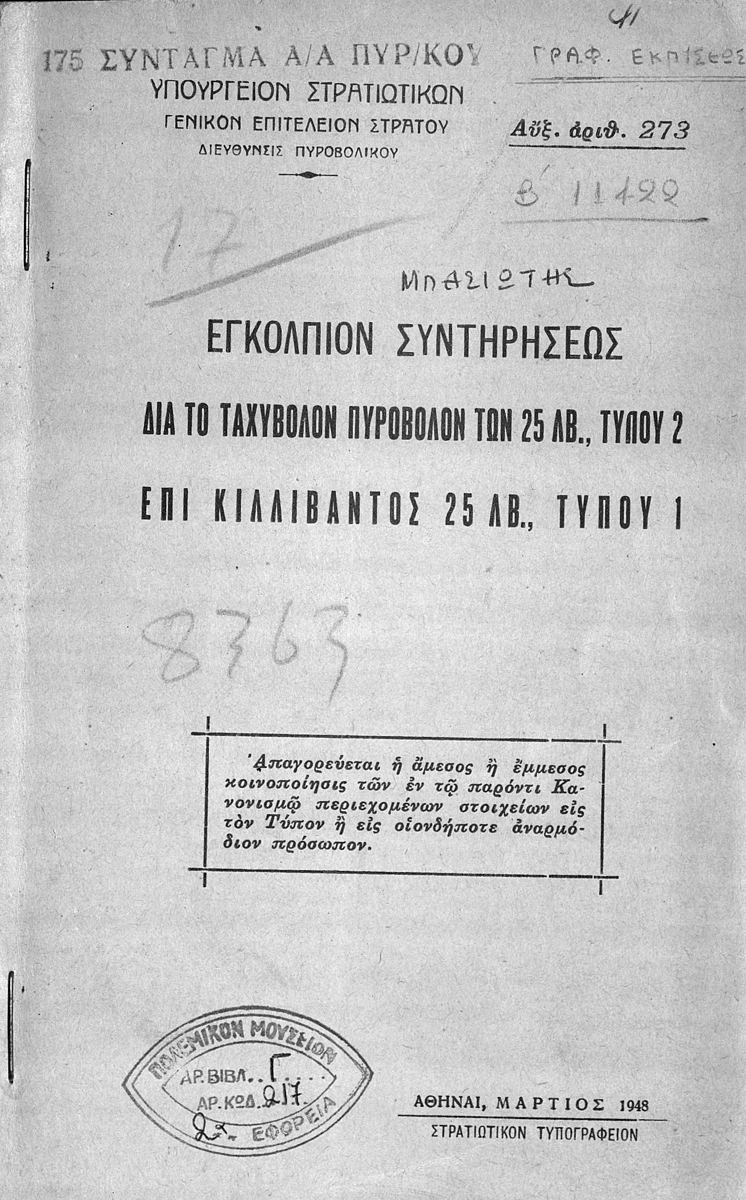 Στρατιωτικός κανονισμός Α/Α 273/1948.