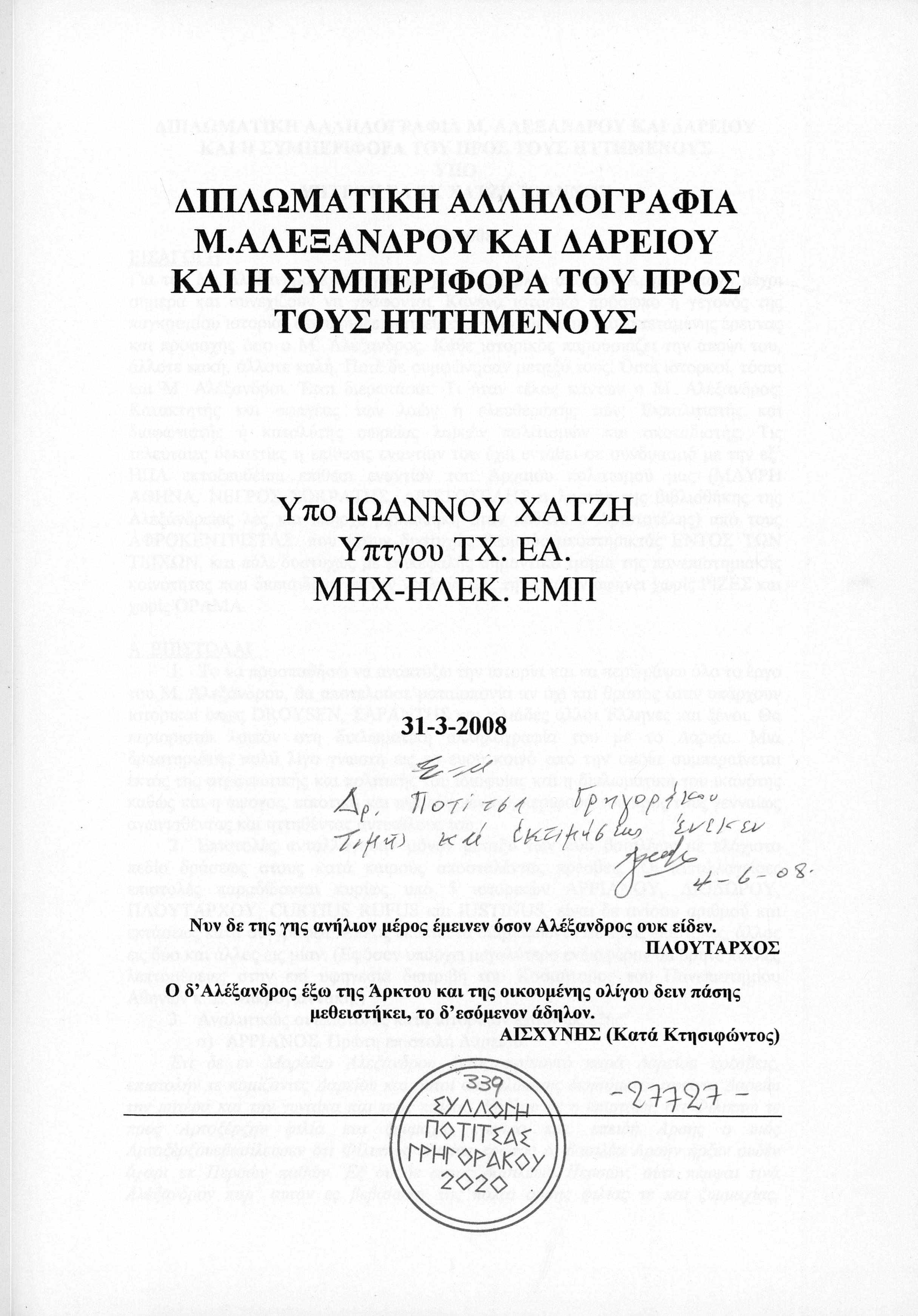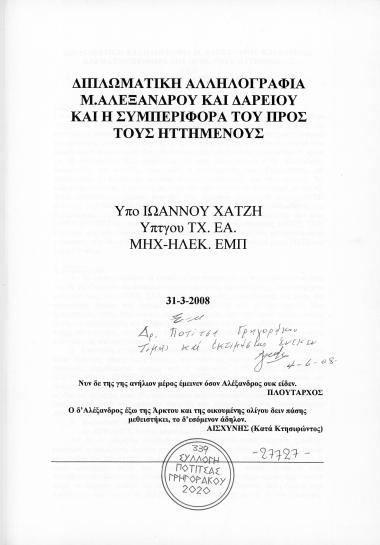Διπλωματική Αλληλογραφ’ια Μ.Αλεξάνδρου και Δαρείου και η συμπεριφορά του προς τους ηττημένους