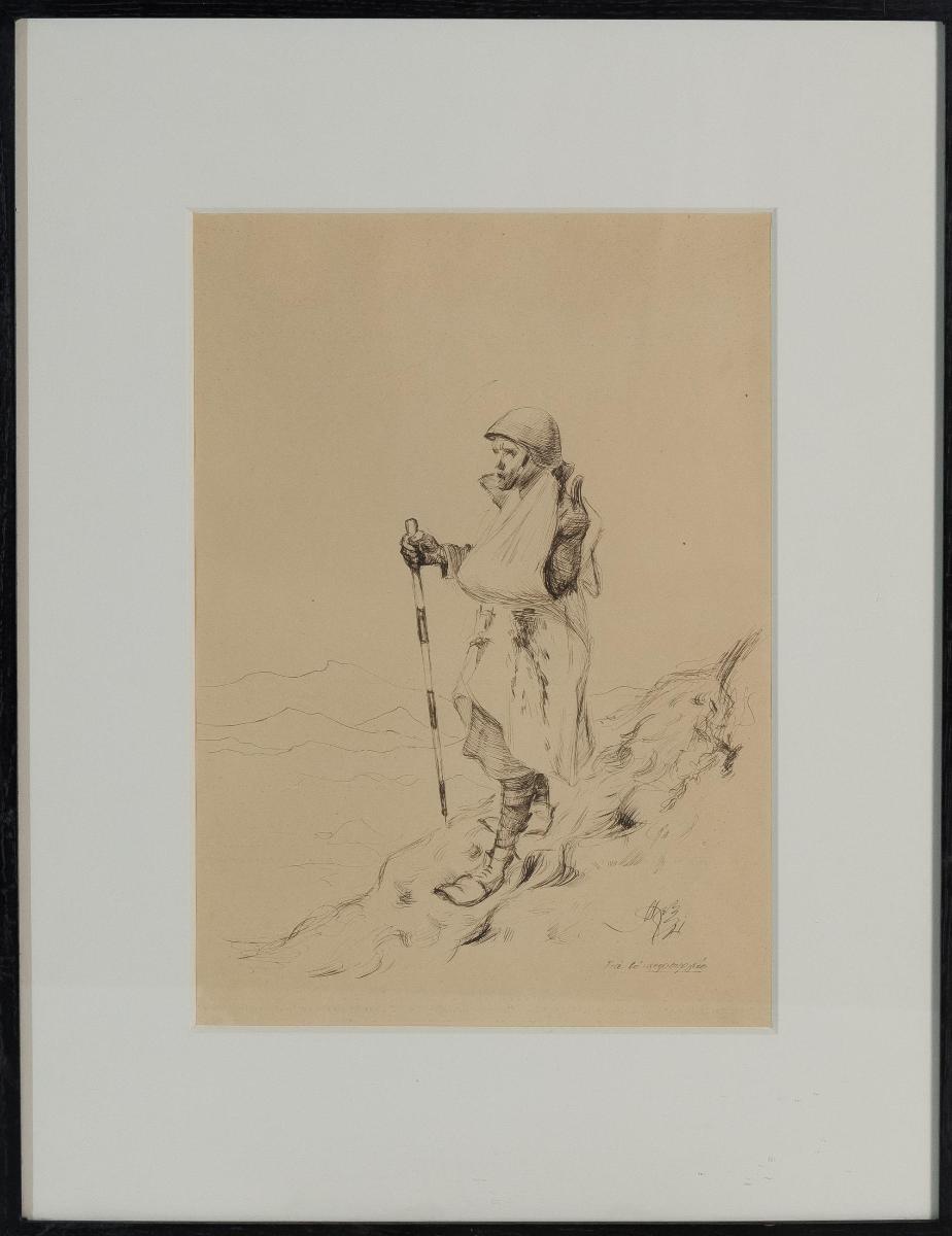 Περνώντας τραυματία στο ποτάμι (μελάνι) , με κορνίζα.Διαστάσεων 34Χ24 εκ.