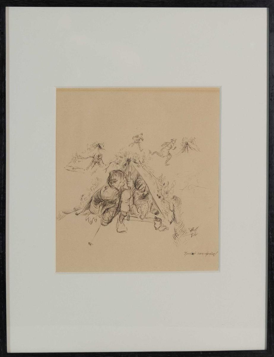 Ερχεται ο ταχυδρόμος (μελάνι) , με κορνίζα.Διαστάσεων 27Χ24,5 εκ.