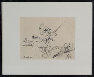 Ενέδρα (κραγιόνι) , με κορνίζα.Διαστάσεων 25,5Χ20 εκ.