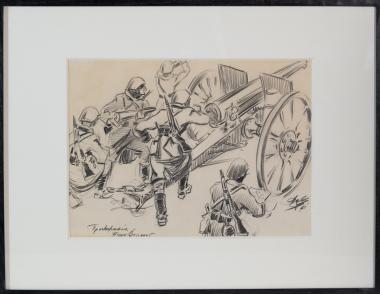 Σχέδιο κραγιόνι (Προετοιμασία Πυροβολικού).Διαστάσεων (24Χ34) εκ.