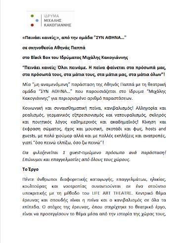 Πρόκειται για το trailer της θεατρικής παράστασης "Πεινάει κανείς?" από την ομάδα "ΣΥΝ ΑΘΗΝΑ…"