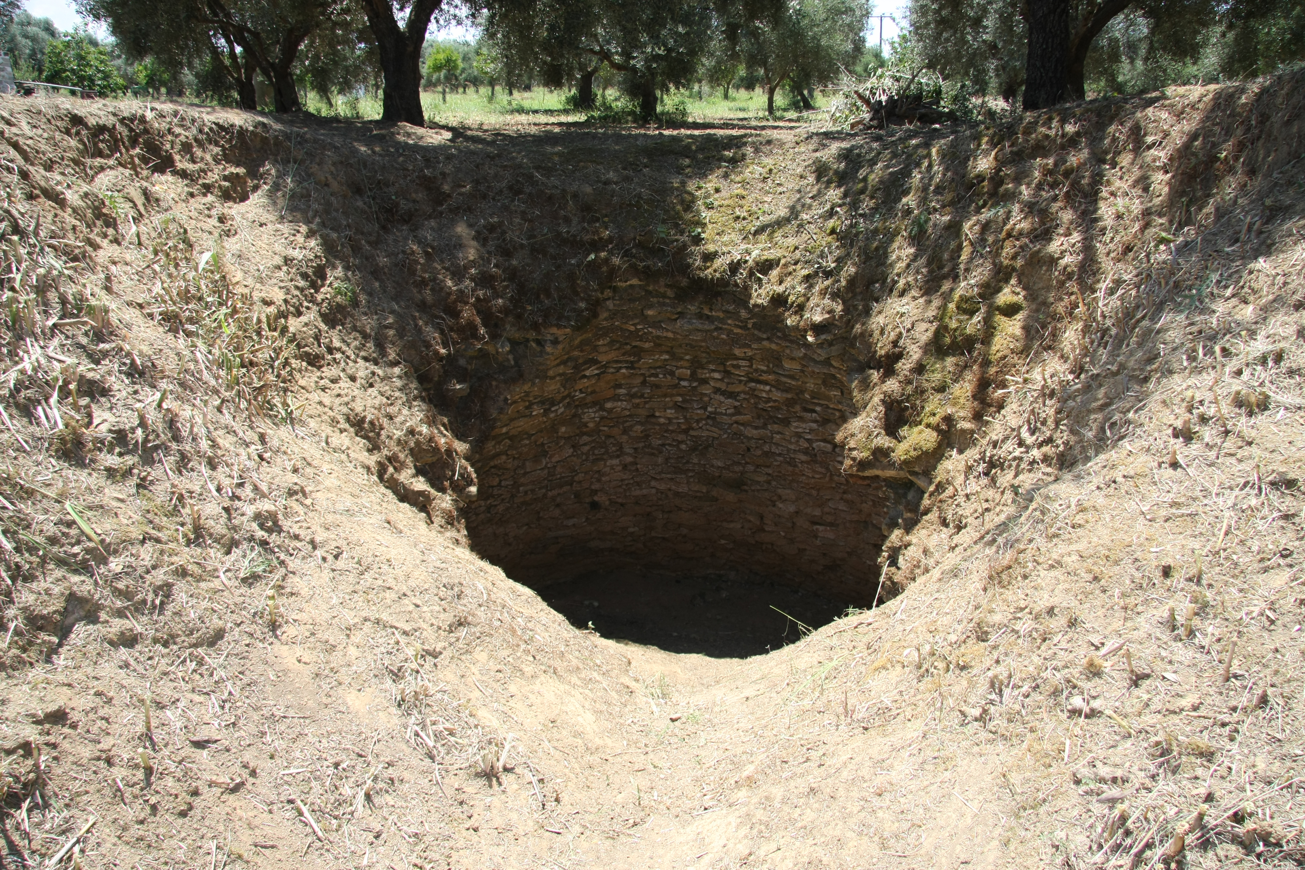 To the northeast of the Osmanaga laggon Konstantinos Kourouniotis started in 1926 the excavation of a tholos tomb which was named after the nearby village, today called Koryphasion. The tomb was of the beehive type, construted with small, flat, coarse stones. The dromos was not walled and the entrance was on the northeastern side of the tholos. The interior was covered with a fire layer, high up to 1 meter. The tomb had been looted. Small fragments of bones and pottery sherds were found; Kourouniotis managed to draw together some pottery vessels such as two unusual two-eared vessels, a jug and a kylix, άτα, a double cup with a single handle and an open-type vessel with a handle inside bearing 12 "loops" on the inner surface. Some traces of luxury items were also discovered, such as silver vessels, a fayence pyxis etc. Most of the vessels were published after Kourouniotis' death by Carl Blegen and dated in the Middle-Helladic period; only the jug was dated to the LH period. The upper part of an amphora with an ellipsoid mouth as well as samples of Minoan pottery were also discovered in the tomb. The finds from the Osmanaga tholos tomb are kept today in the National Archaeological Museum at Athens.