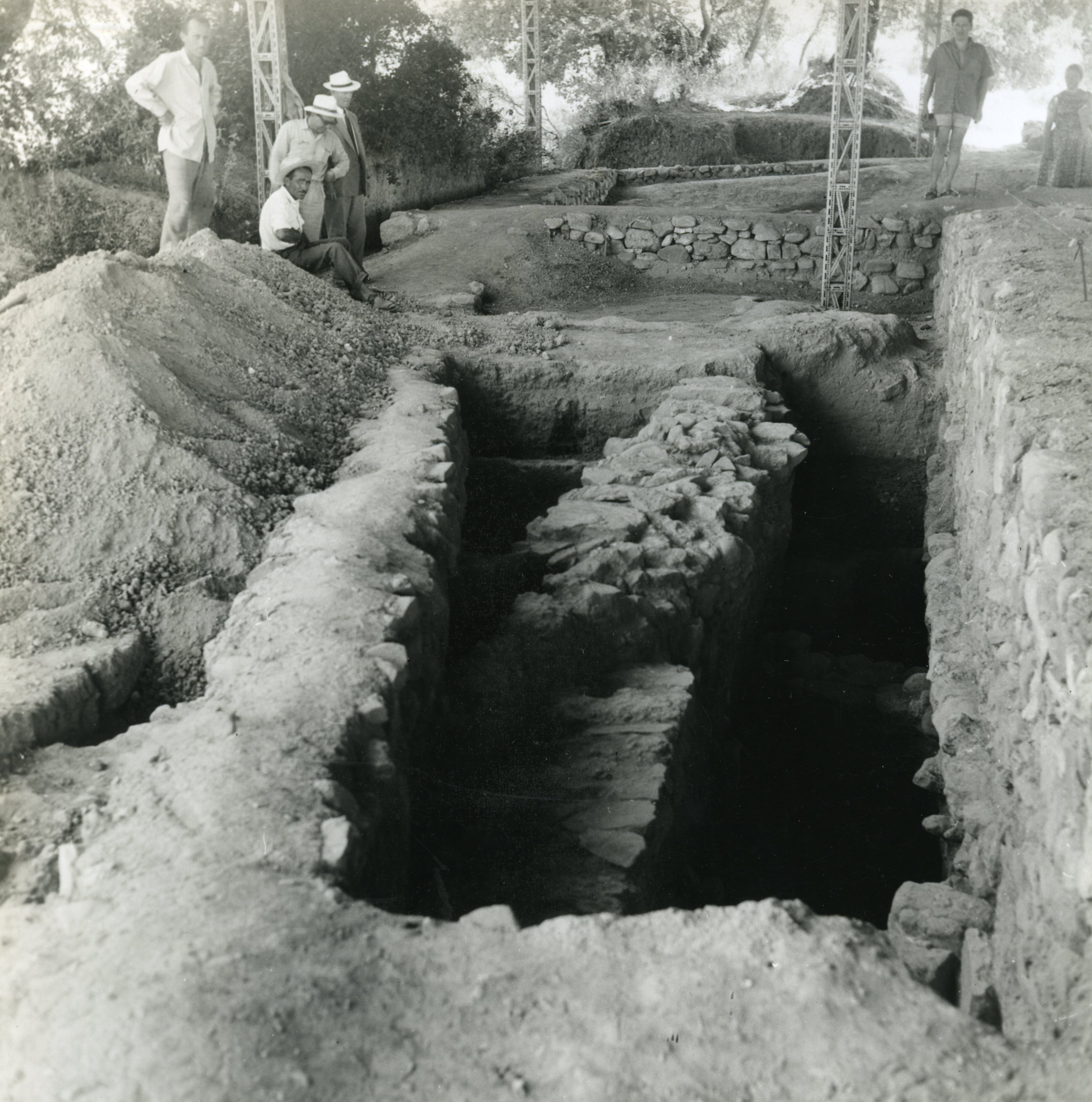 Excavation at the Palace of Nestor in presence of archaeologists, 1962
