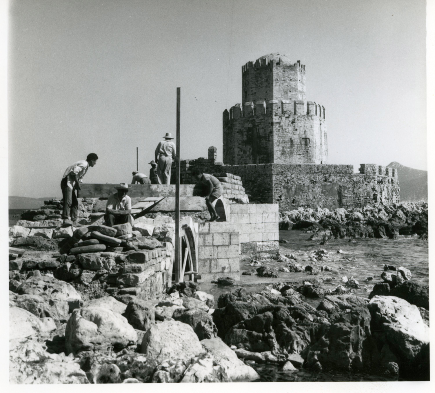 Αναστήλωση στο Κάστρο της Μεθώνης τη δεκαετία του 1960