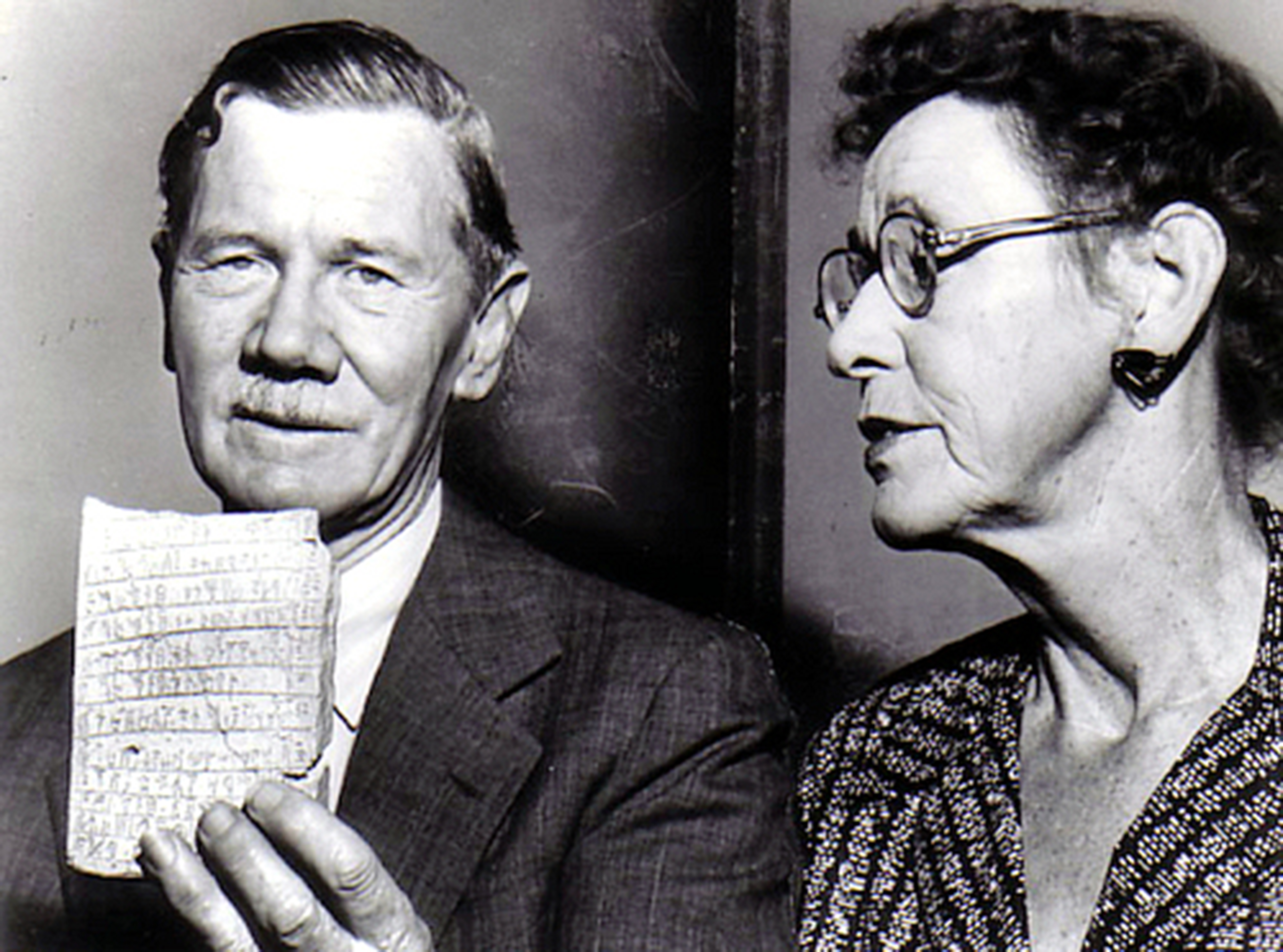 Carl Blegen and Marion Rawson with a Linear B' tablet