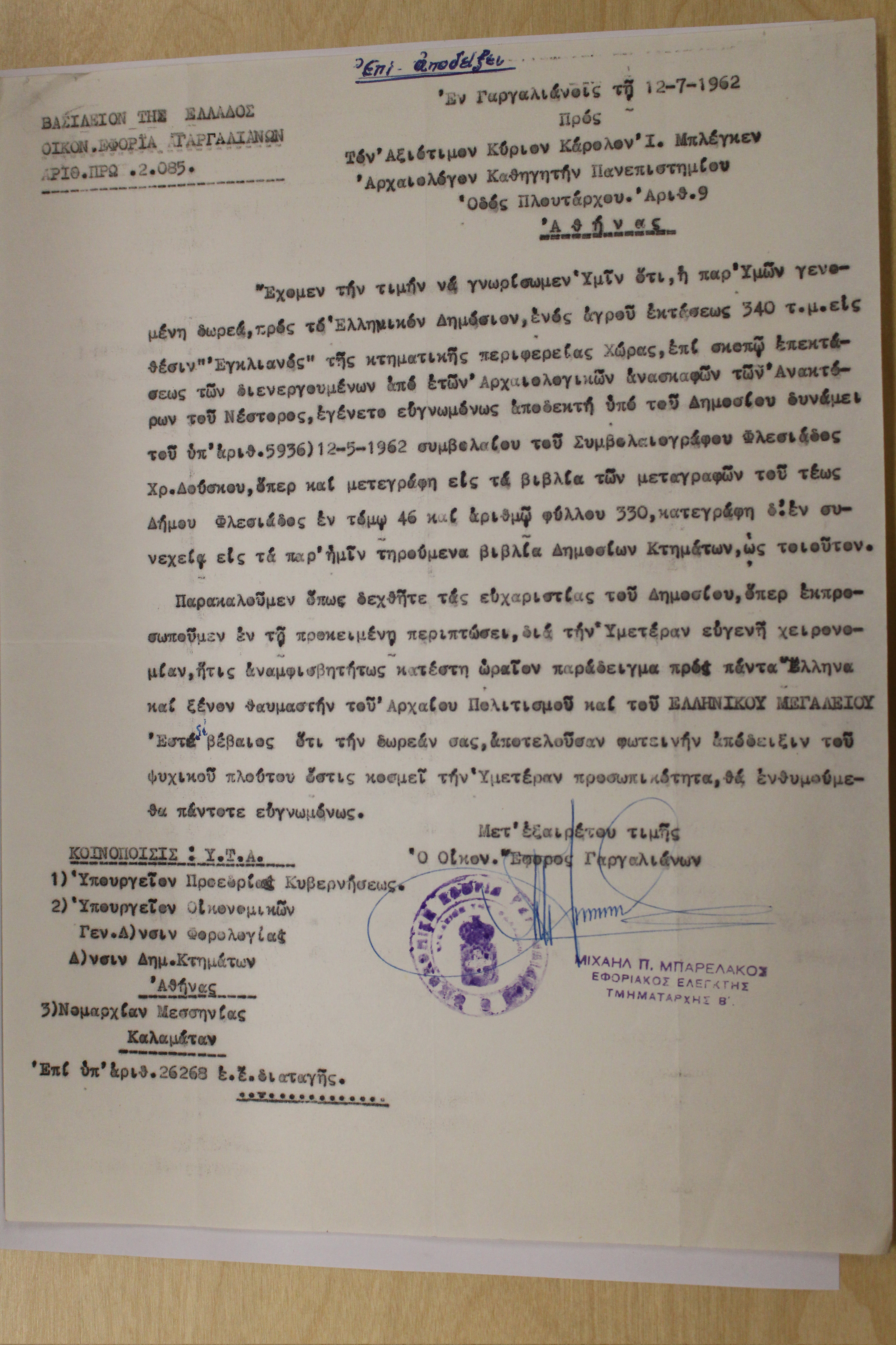 Acceptance of a donation of a plot at Englianos