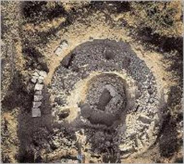 The burial tumulus of Agios Ioannis, Papoulia. Aerial Photograph.
