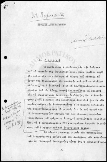 Έκθεση Πεπραγμένων Υπουργείου Βιομηχανίας (1964)