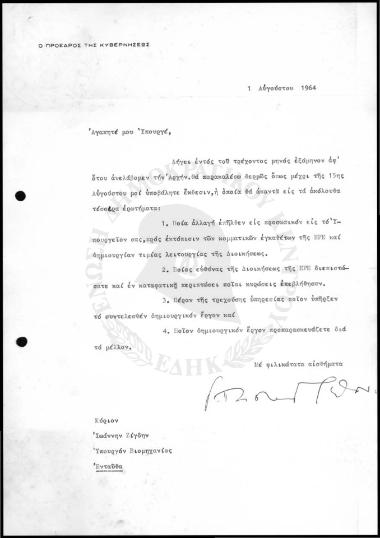 Επιστολές Ι.Γ. Ζίγδη και Γεωργίου Παπανδρέου (1964)