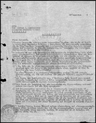 Αλληλογραφία με θέματα Γεωργικών Συνεταιρισμών Δωδεκανήσου-Ε.Π.Ε.Κ. Δωδεκανήσου- Γενικής Διοικήσεως Δωδεκανήσου-Υπουργού Βιομηχανίας (1952)